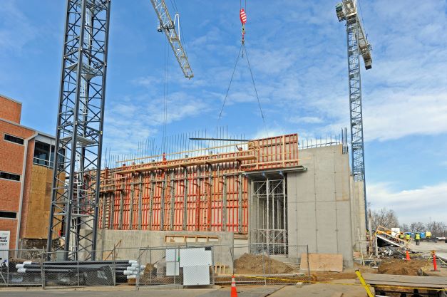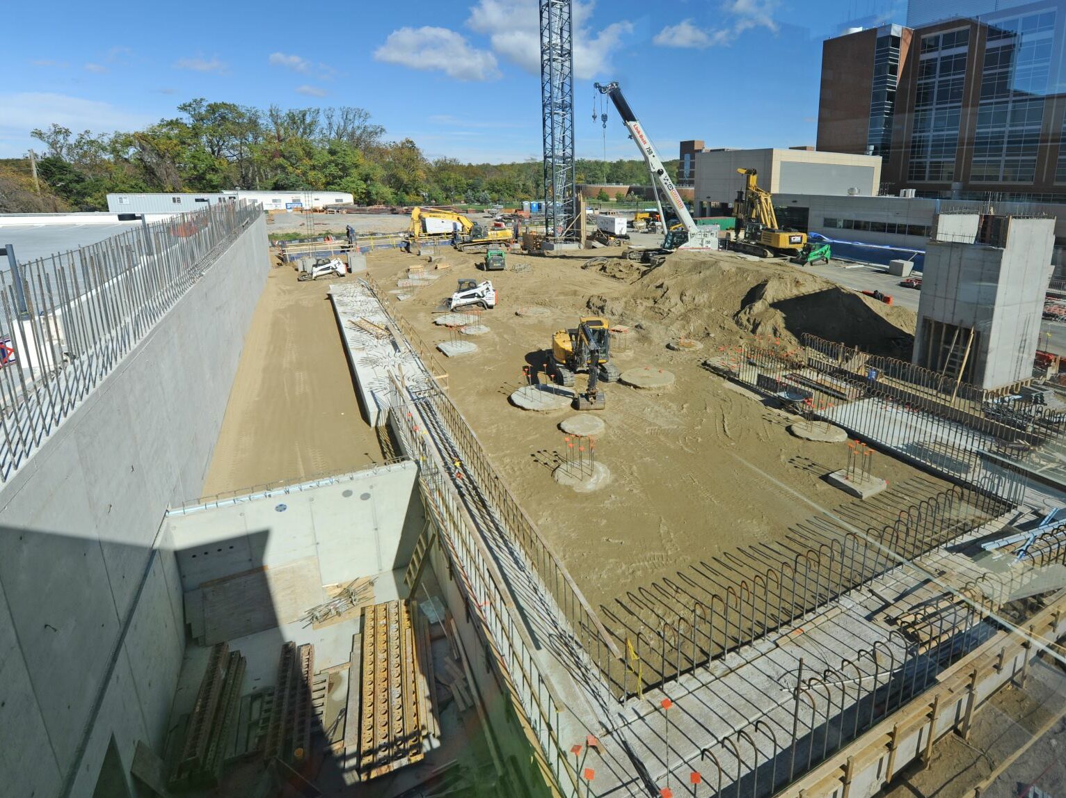 The Sibley Proton Therapy project was 81,500 gsf, 20,070 cubic yards located at John Hopkins Kimmel Cancer Center. The 3-story Proton Center is comprised of 3 gantries and 1 fixed beam room. Nearly all the concrete on the project considered “Mass Concrete” due to the 5’ thick foundation and shear walls, as well as 5-13’ thick elevated decks. The Lid of the gantries were 13’ thick and had to be framed over 50’ high.