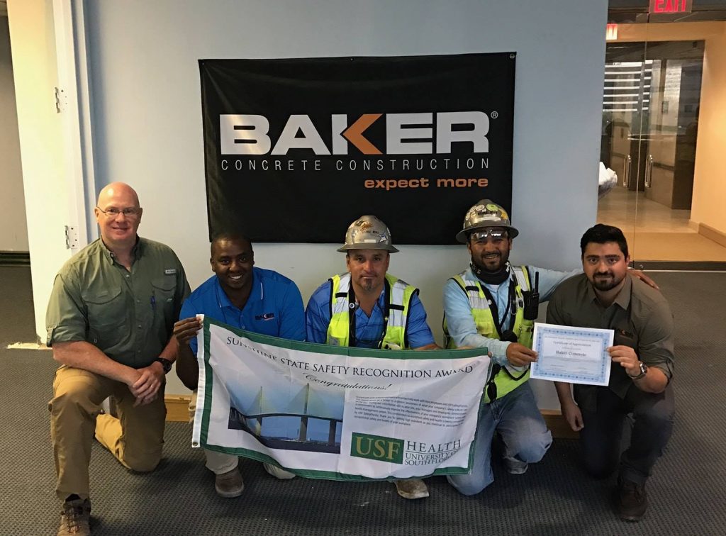 March 2016 – USF Safety Florida presented the Sunshine Safety Recognition Award to Baker co-workers at Panorama Tower! The award is granted to companies that exhibit an ongoing commitment and dedication to safe business practices on-site.