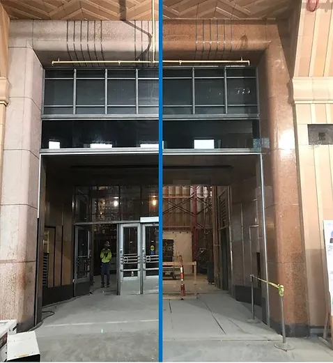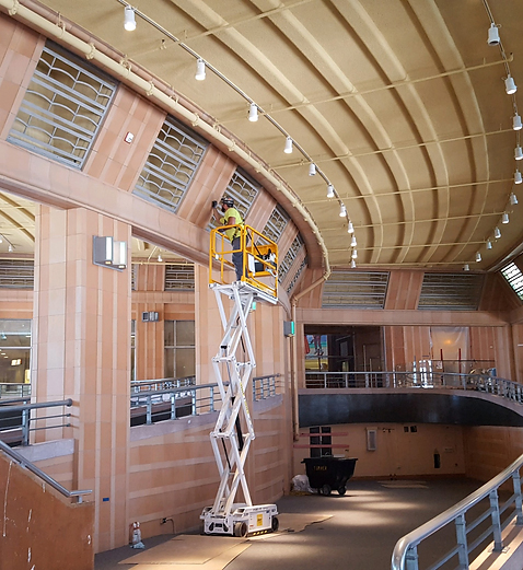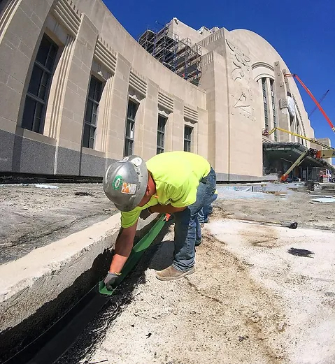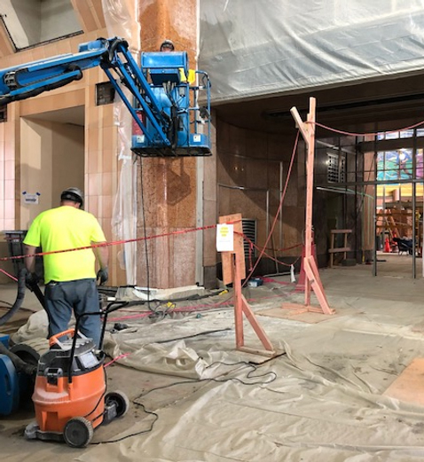 Baker was part of the project team that helped restore Cincinnati’s iconic art deco Union Terminal. On the interior, Baker co-workers polished more than 10,000 square feet of marble, completed 24,000 square feet of tuckpointing, and cleaned terracotta. The restoration revitalized terracotta cladding that had been damaged years of bus and taxi traffic. Outside, Baker removed existing waterproofing, including 100-year-old tar, repaired concrete, installed new waterproofing, and replaced expansion joints and sealants. Painstaking attention to detail helped bring this national treasure back to life.