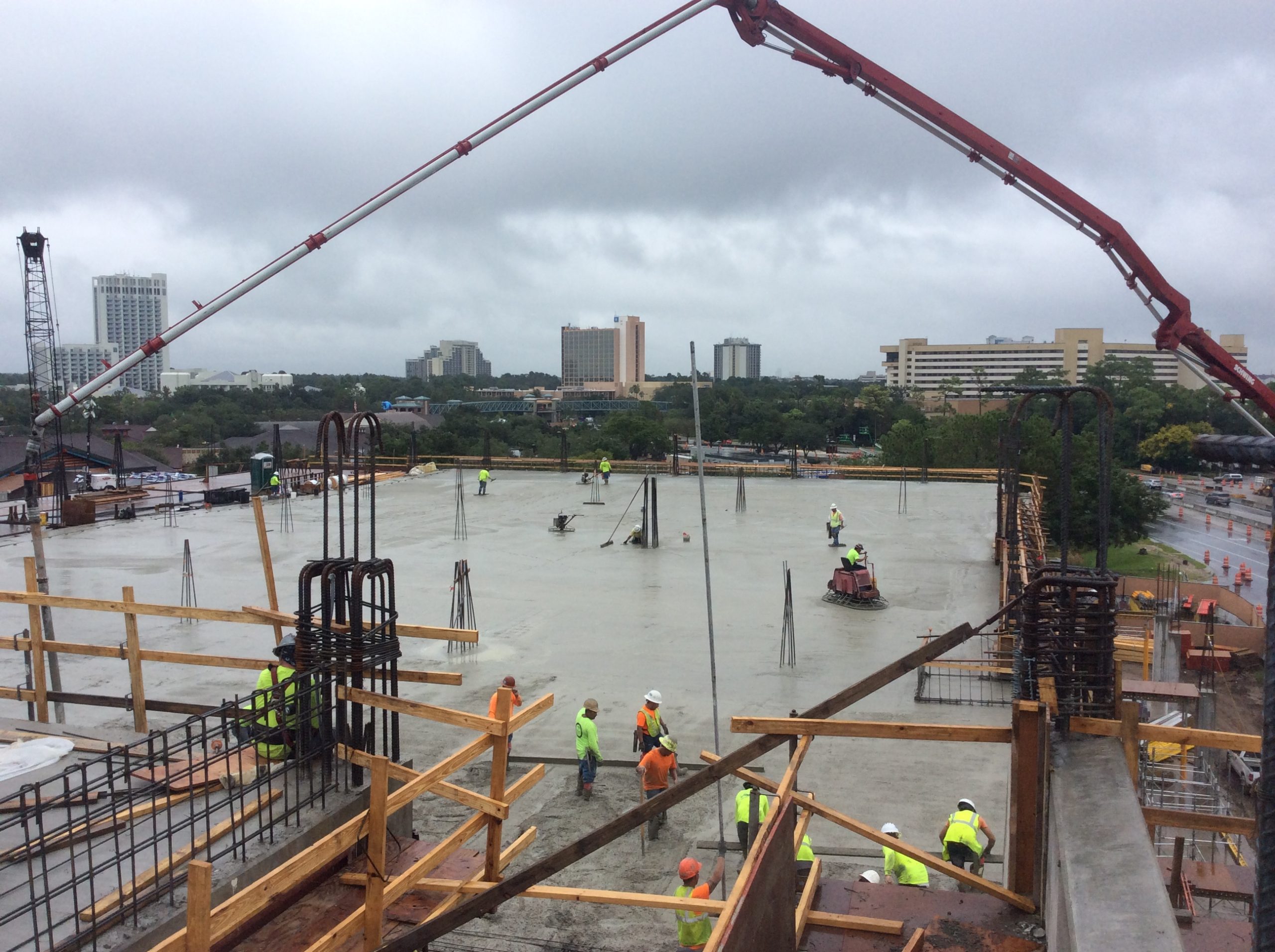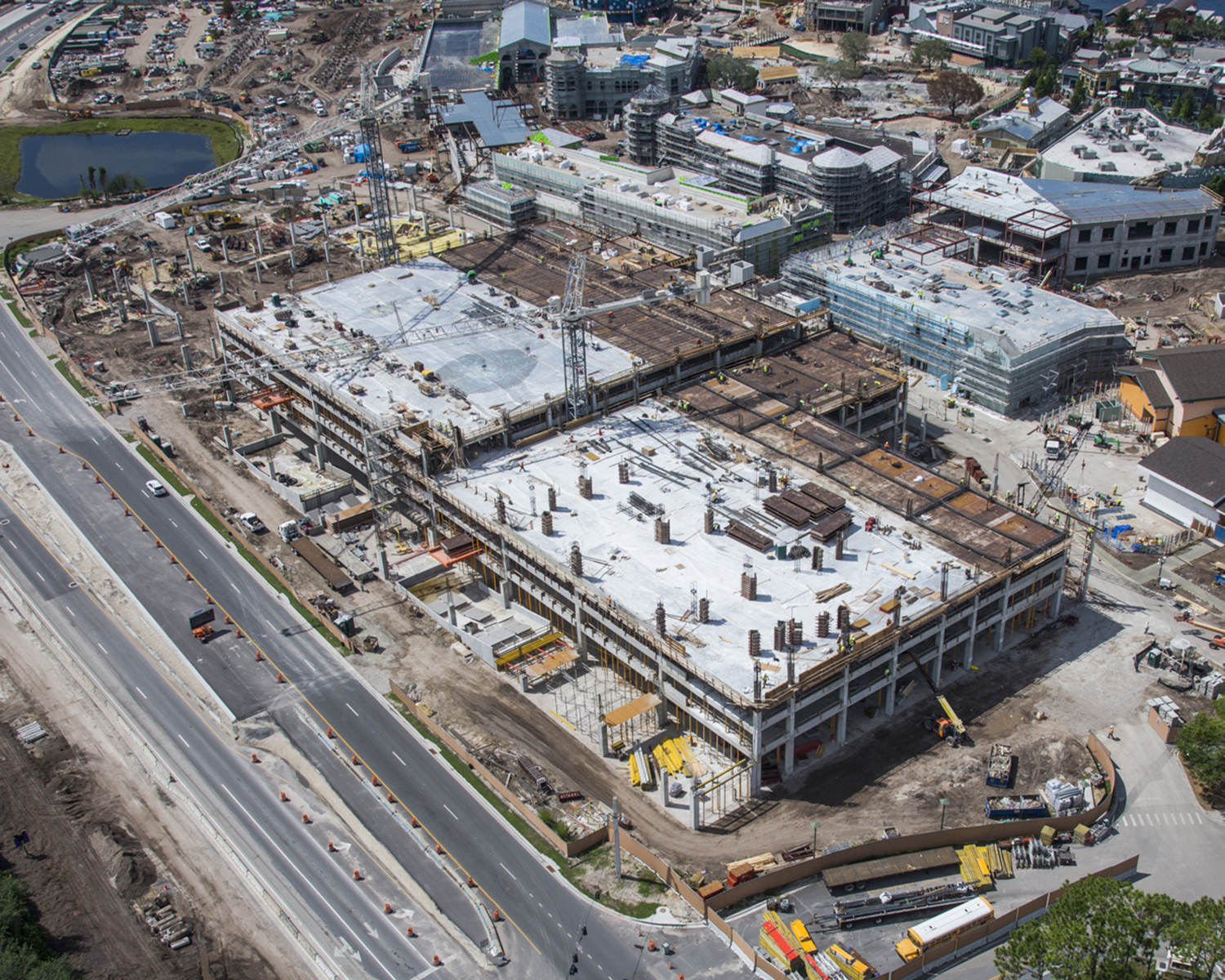 This five level Cast-in-Place open parking garage includes one slab on grade level and four elevated levels with external speed ramps. The garage is 823,000 sf and the external ramps are 60,000 sf. The parking structure, located in Orlando, Florida, helps to support the newly developed shops and attractions that opened in the Disney Springs area in 2016. Over one million visitors patronize this area each year. This project was completed by our Orlando, Florida, team.