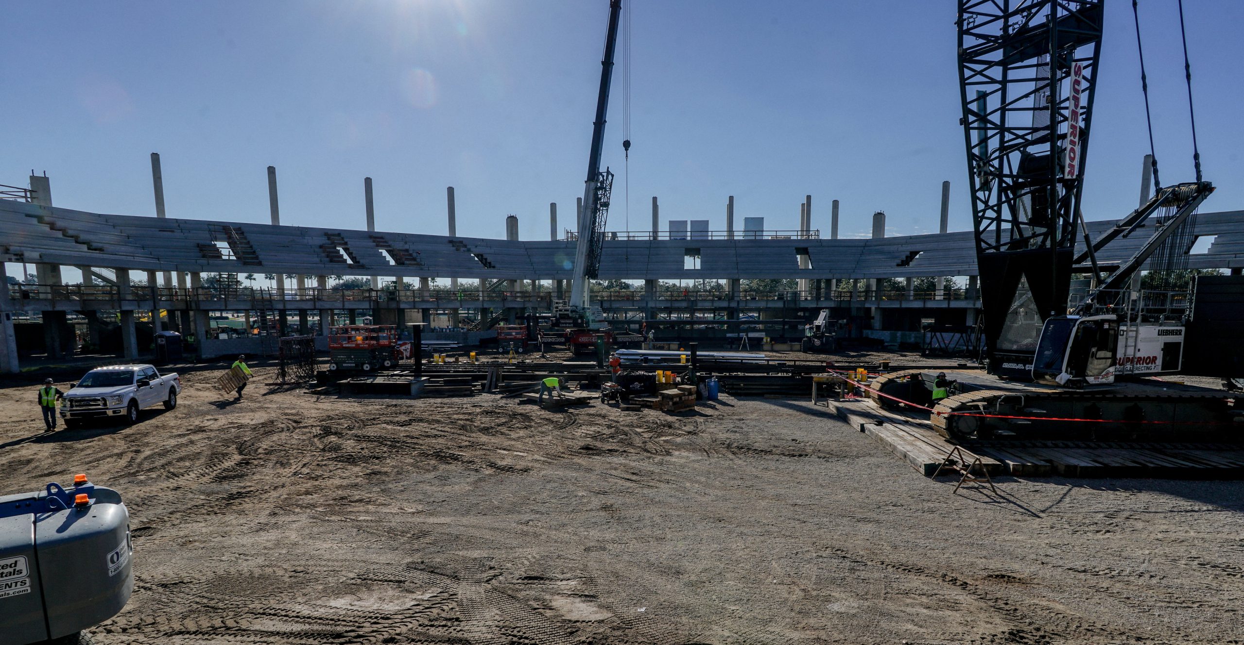 Located at the ESPN Wide World of Sports Complex within in Walt Disney World, the Vista Athletic Center is a multi-sports venue that houses areas for cheer, dance, basketball and volleyball courts, and more. Baker Concrete’s entire turnkey scope included, foundations, slab on grade, columns, elevated decks, raker beams, loading dock construction, exterior grand stairs, two pre-engineered metal build slabs, and an extensive exterior hardscape package. The project consisted of 4,100 cubic yards of foundations, 3,200 cubic yards of Elevated Deck and 1,500 cubic yards of Raker Beam Placements. This project is a recipient of the 2018 ABC Eagle award. This project was completed by our Orlando, Florida, team.