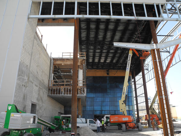 The schedule was particularly challenging due to the need for all trades to work simultaneously to meet the hard date finish (30+ boomlifts counted on site for final half of the project). Double shifts were required for approximately 2 months during the heat of the project. Installed 2 floors of elevated deck retrofitted and tied into an existing building based on as-built conditions varying from the structural drawings. Approximately 1/3 of all tie-beams were installed with shoring and blocked in after the fact due to schedule lag. All tie-beams were originally set to be installed on top of block wall placement in a linear fashion. Baker successfully completed the project with zero recordable injuries.