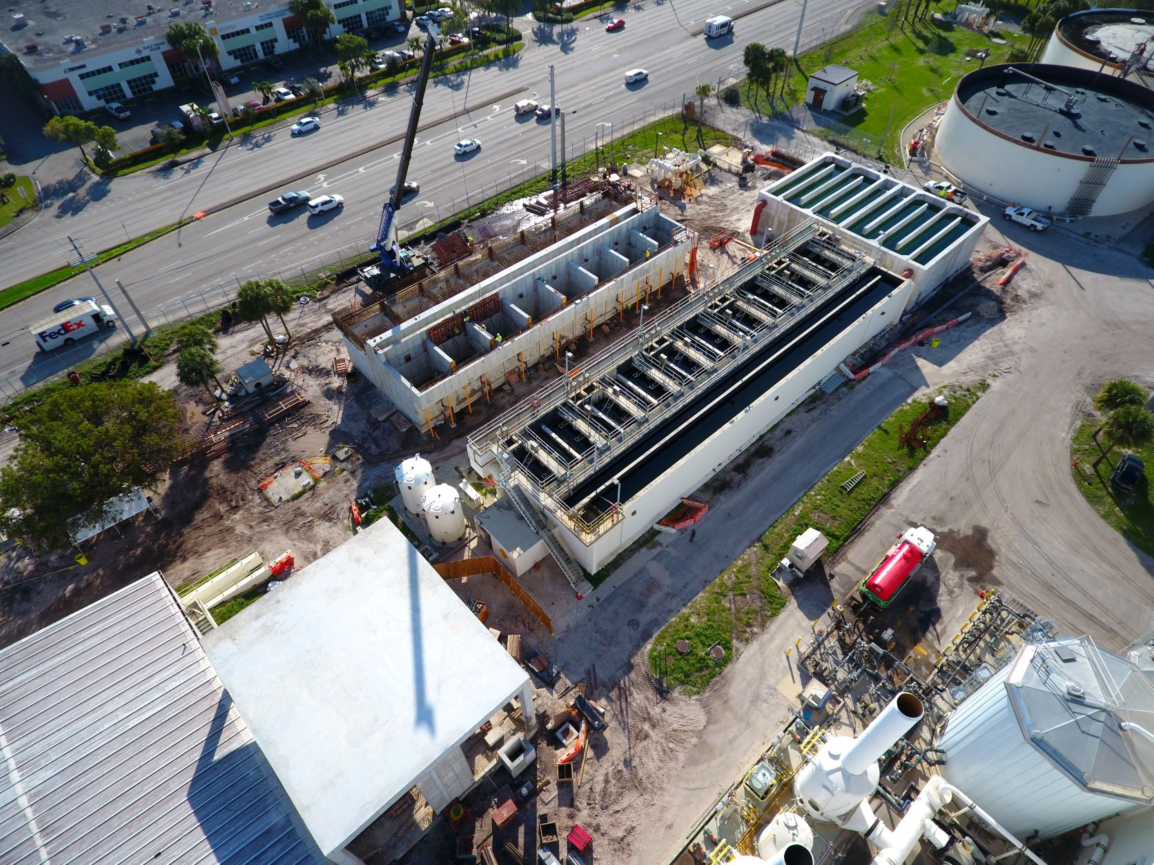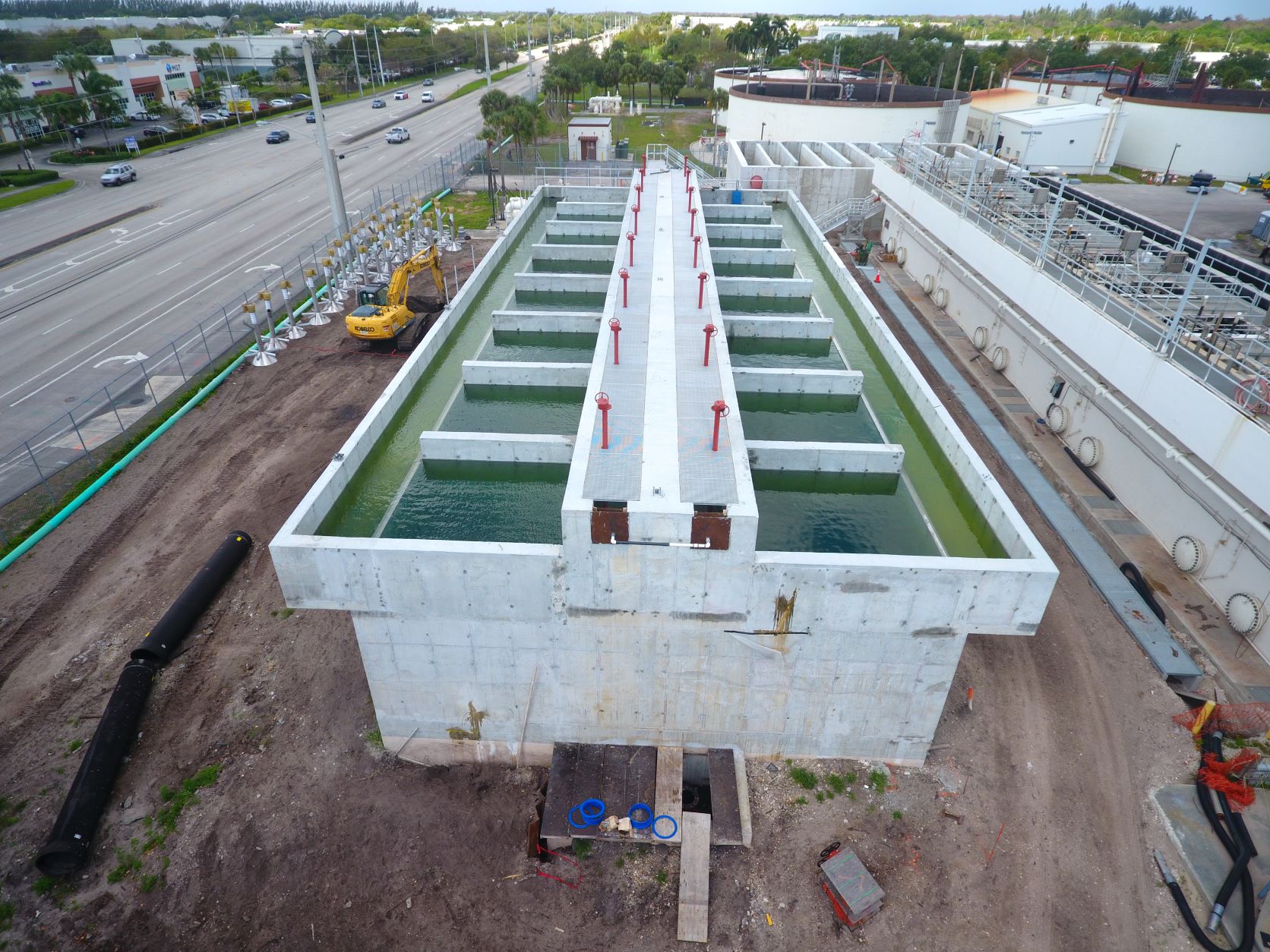 The North Regional Waste Water Treatment Plant located in Pompano Beach, Florida is a total of nearly 8,500 CY which includes a chemical storage building, chlorine contact tanks, water filter tanks, air compressor pads, fuel pad, sludge pad, concrete pavement, a two story electrical building, miscellaneous concrete pads, and pipe supports. This project was completed by our Fort Lauderdale, Florida, team.