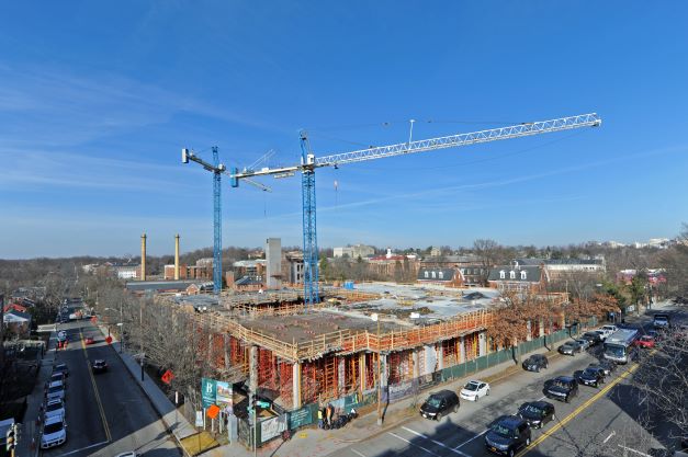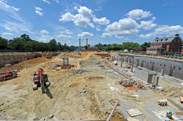 The V/U Project on the Historic Walter Reed campus was a new construction building with a below-grade parking structure that had both an Apartment and Condo podium structure. This site had a rock vein that ran through the foundation presenting a higher level of difficulty for our foundation installation, access, and execution. With this, the challenges caused our teams to diligently navigate the schedule with the owner and client, as well as other trades, to ultimately beat the schedule and allow for the General Contractors’ timely turnover hitting their milestones. The access on the existing historic site and with the surrounding buildings presented challenges as the project sat on the corner of the main thoroughfare into the District with a residential neighborhood on the intersecting corner. Our teams diligently planned, coordinated, and executed the orchestra of concrete construction which lead to our successful execution of the project as a whole.