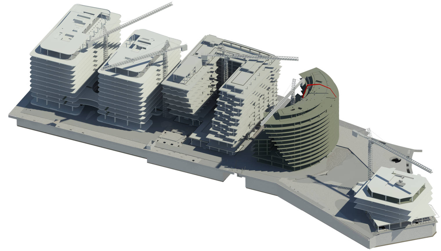 Baker served as the structural cast-in-place subcontractor on the sweeping Wharf Phase 2 project in Washington, D.C. The scope included 650,000 square feet of below-grade parking levels and 1.3 million square feet of above-grade slabs between five different multistory residential and office parcels. To keep the project moving smoothly, the Baker team relied on building information modeling to streamline communication and coordination between project partners, reduce redundancy, and uncover value-added insights. The project received a 2021 Craftsmanship Award for cast-in-place concrete from the Washington Building Congress.