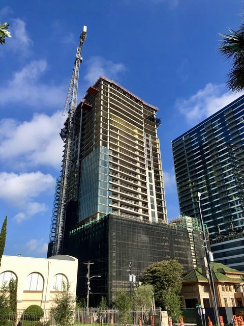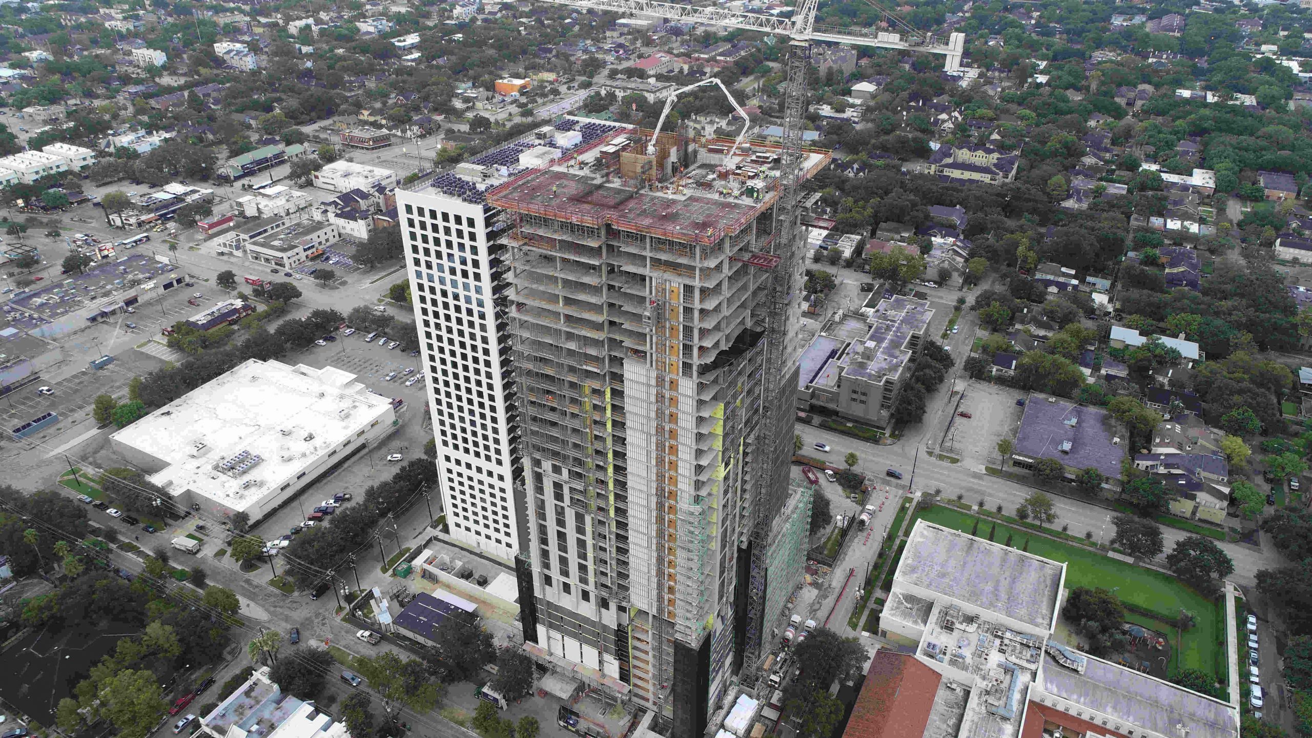 The 35-story high-rise building is part of a larger development that includes the current La Colombe d’Or historical mansion. Originally built in 1923 as the Fondren Mansion, the La Colombe d’Or is connected to the tower via outdoor green space.
