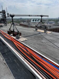 With approval from Tulane’s engineers, Baker replaced manlifts with swing stages to increase efficiency and workspace. The swing stages provided 40 feet of workspace and accommodated more workers and materials.