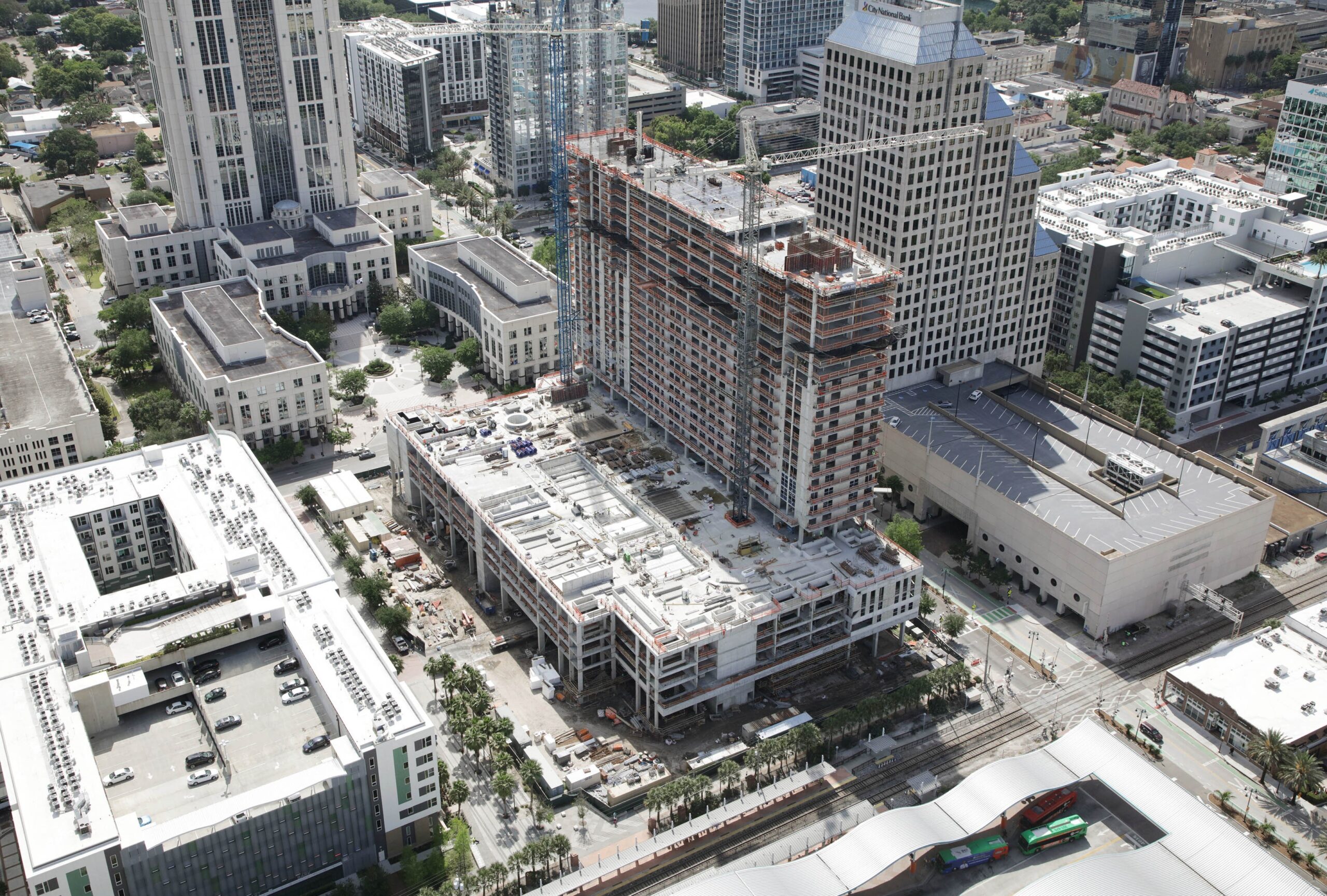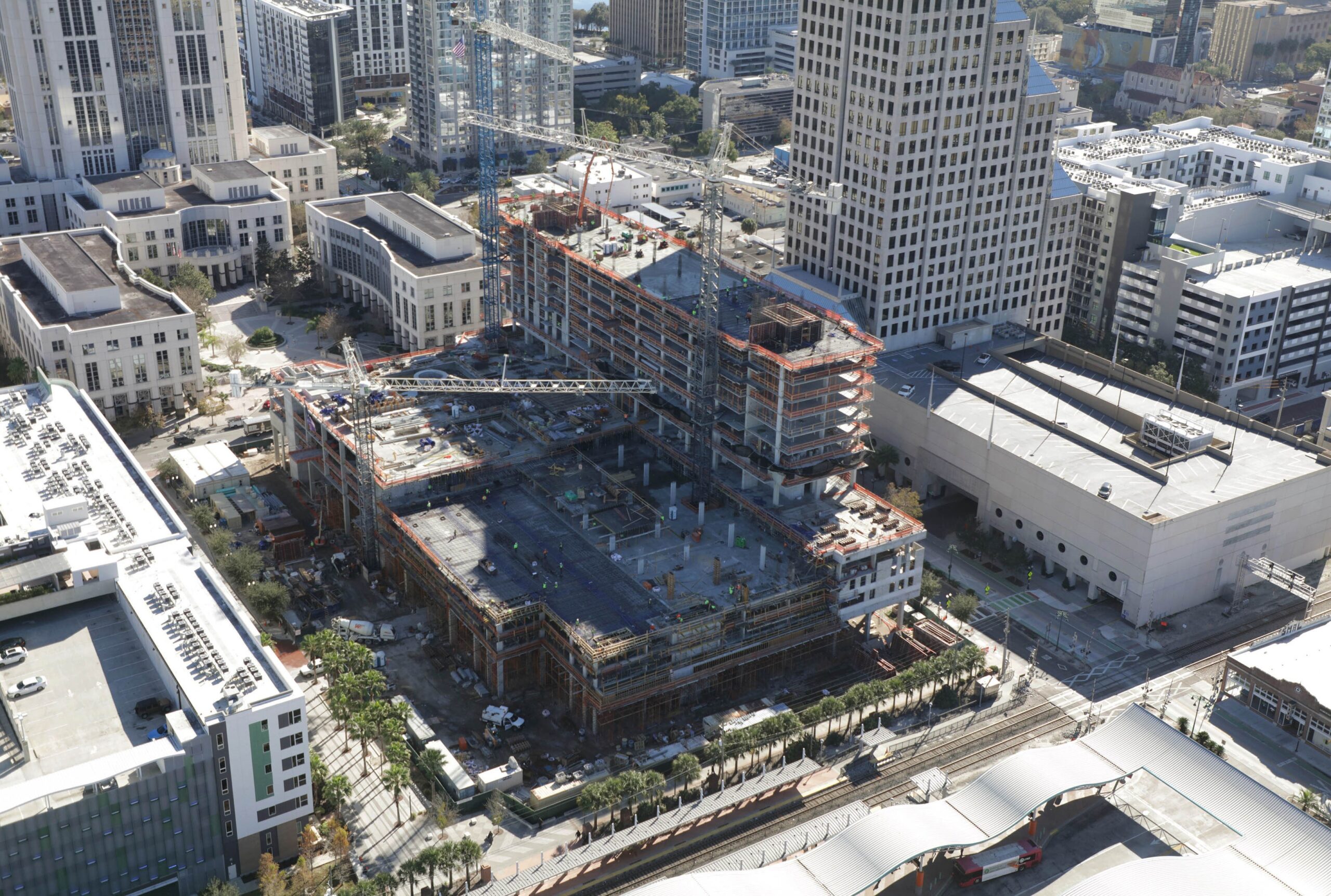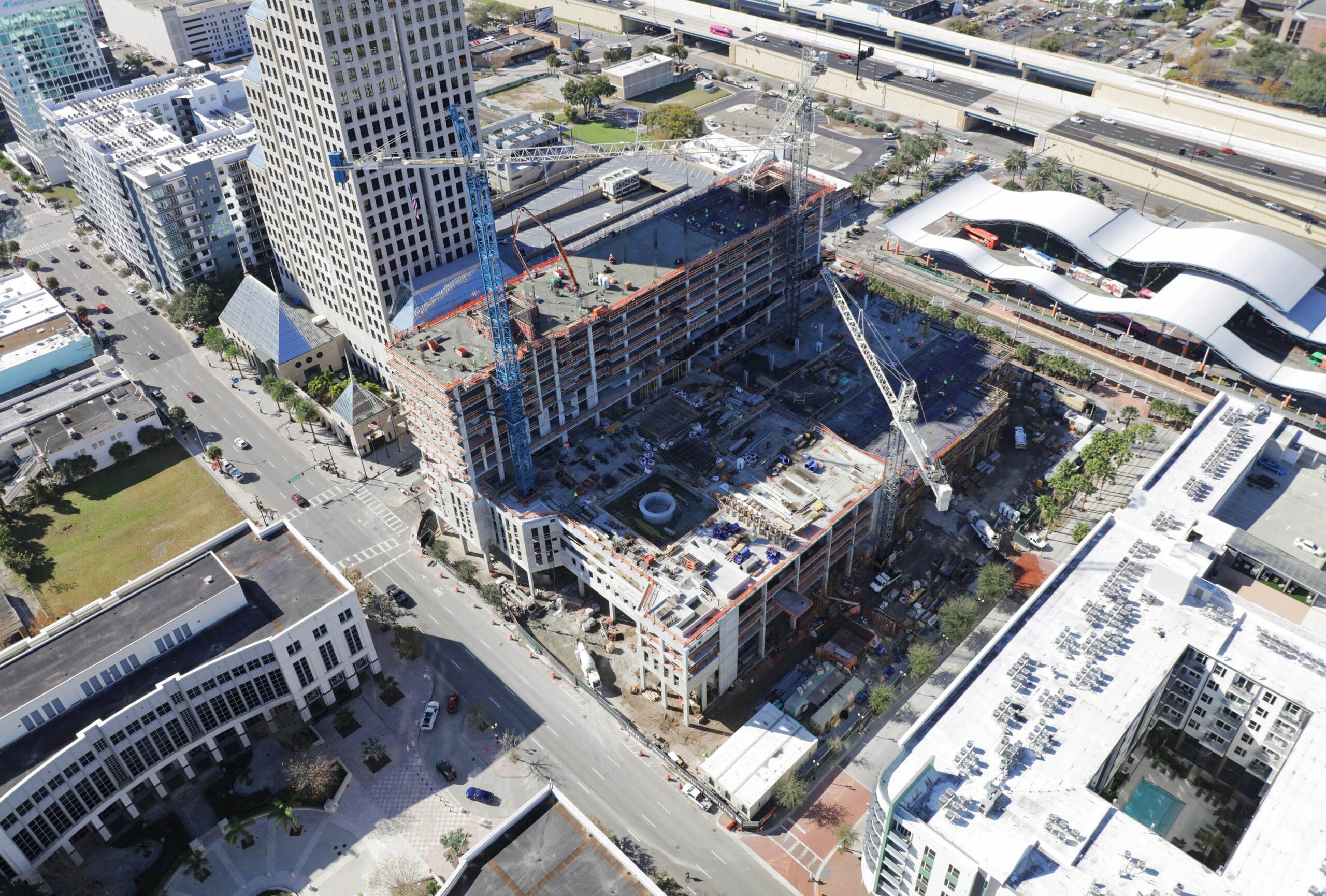 Baker performed cast-in-place concrete and masonry façade work for Society Orlando, a 26-story apartment building in downtown Orlando with a parking garage, podium amenities, and a pool deck.
