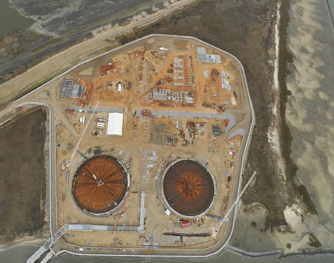 Aker Kvaerner was awarded the development contract and brought Baker on board to handle the concrete scope. Baker’s contract included pile caps, walls, and concrete roofing for two full containment tanks. Each tank is 160,000 cubic meters. Combined, they have a capacity of 6.6 billion cubic feet.