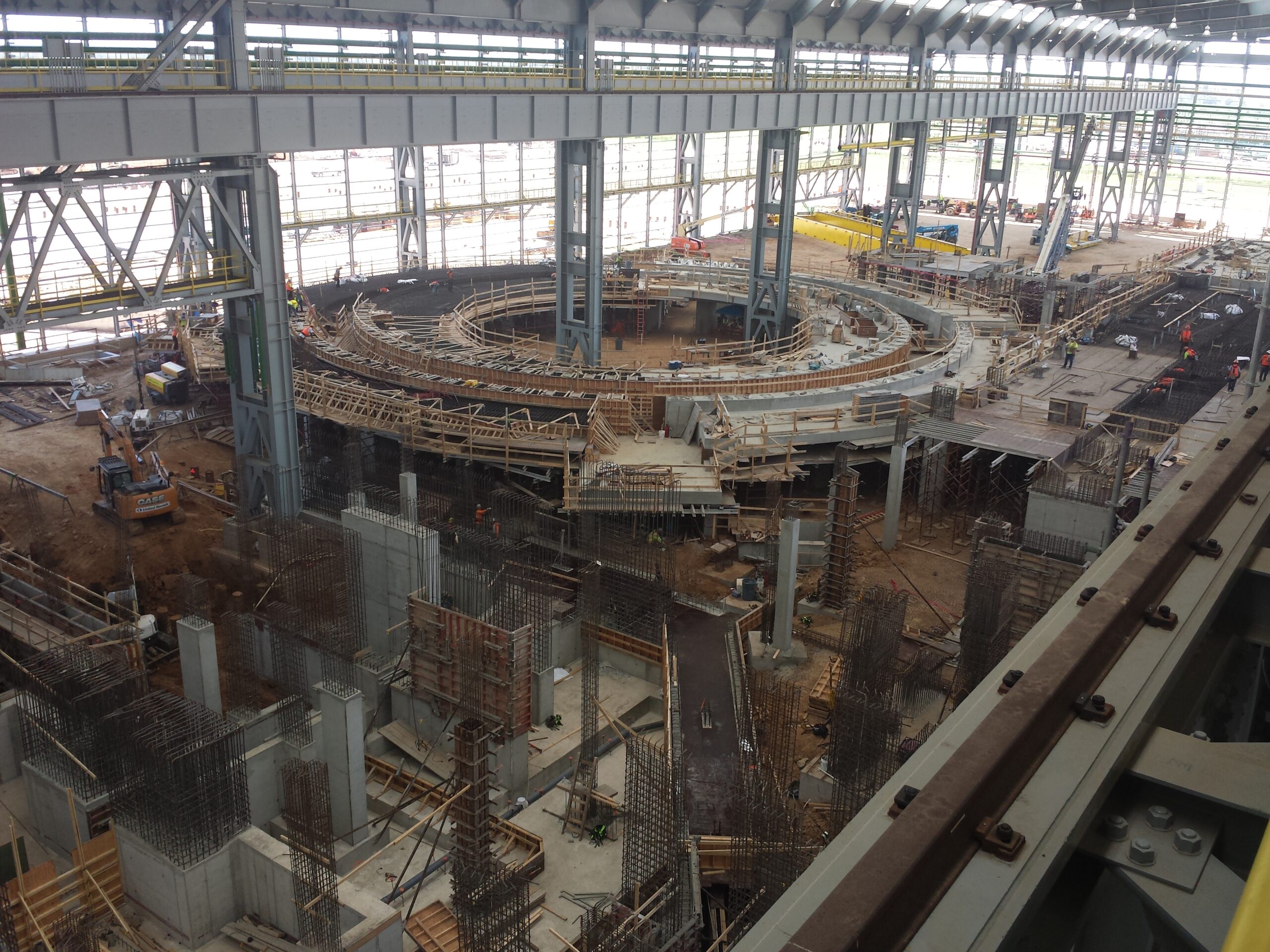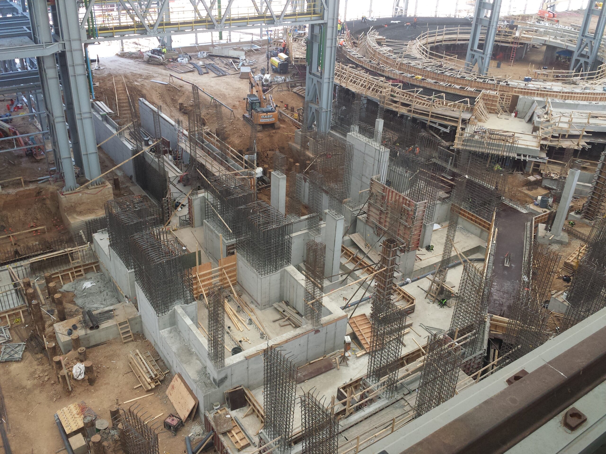Baker constructed foundations, deep tunnels and pits, structural columns, walls, and a series of complex mezzanine decks. The mezzanine decks were designed with numerous pits, pads, curbs, embedments, block-outs, and elevation changes to accommodate specialized mechanical equipment. The decks were more than nine feet thick in some areas.